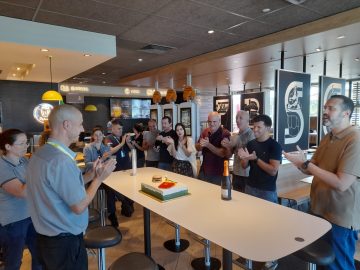 A data foi comemorada em ambiente de festa pela equipa que, como sempre, marcou presença, reflexo da valorização das pessoas, das competências interpessoais e do bom ambiente vivido por todos colaboradores do grupo McDonald’s de Terras Santa Maria.