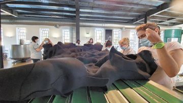 O objetivo do projeto não era tanto “dar uma carga negativa”, mas “pegar nessa ideia dos unhas negras e transportá-la” para a criação. “Vamos tapar a máquina que veio substituir o trabalho dos unhas negras”, refere, explicando que, ao todo, trabalham com cerca de 400 chapéus de feltro, recortados em pedaços, construindo assim “um objeto escultórico”.