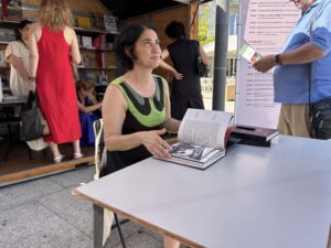 Sobre a Feira do Livro, a autora destacou o ambiente informal e o contacto próximo com os leitores. “É bom ver pessoas de todas as idades a passar por aqui, a folhear livros, a conversar com os autores. A literatura precisa destes encontros.”