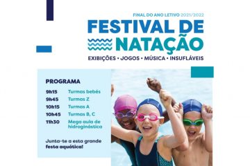 Exibições, jogos, música e Insufláveis são atrações deste Festival de Natação que vai decorrer nas piscinas municipais, no Complexo Desportivo Paulo Pinto.