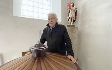 Com pandemia decidiu retirar-se do cargo, mas não da igreja. “As pernas já não são o que eram, e os anos também já cá pesam”, diz, sorridente na entrada da Matriz.
