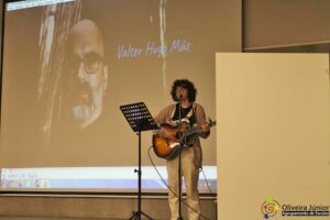 No dia 12 de março, o escritor Valter Hugo Mãe voltou à nossa escola. O encontro, destinado às turmas de 11º ano e preparado pelo 11º E, criou uma oportunidade para conhecermos melhor a obra e o autor. O regresso à escola após um longo interregno, permitiu-lhe ver as novas condições físicas da Escola Oliveira Júnior e o quanto as aulas são abertas ao mundo que nos rodeia. Em troca, recebemos muitos conselhos, de entre os quais se destaca: “Não deixem que façam as coisas por vocês. Aprendam a fazer e a pensar sozinhos! “ Referia-se a tudo, inclusive à AI. Não se cansou de alertar para a necessidade de os jovens saberem aproveitar o grande potencial que a idade lhes proporciona. Em tom divertido, rematou várias vezes a conversa, dizendo “Um dia, vão lembrar-se do que vos disse um escritor careca que veio à vossa escola!”. Assim será! Recordaremos sempre o encontro com Valter Hugo Mãe!