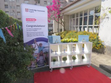 Para entregar os diplomas aos nossos alunos esteve presente na cerimónia Lucy Bravo, directora do Knightsbridge Examination & Training Centre, o primeiro Platinum Exam Centre de Cambridge em Portugal, que segundo Ana João Borges “é o centro de exames com quem a nossa escola passou a trabalhar a partir de 2023. Como também já é tradição, a confecção do lanche ficou a cargo da CERCI S. João da Madeira”, no âmbito da Formação Profissional em Hotelaria que a instituição providencia aos seus utentes. As iguarias preparadas fizeram imenso sucesso entre os presentes.