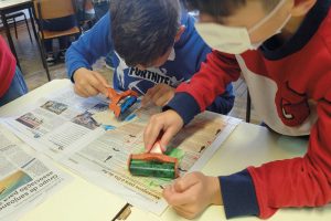 Todos os alunos do 4º ano das escolas EB de Fundo de Vila e do Parque, acompanhados pelos respetivos professores, deslocaram-se à escola para participar em diferentes atividades. Os alunos experienciaram jogos lúdico-desportivos, música e artes plásticas, linogravuras, para estimular a criatividade e o sentido estético. Os alunos do 11º e 12º anos de artes visuais deram o seu contributo interagindo com os mais pequeninos. Também os docentes da educação especial participaram na articulação de todas as atividades. Com direito a lanche, no final houve lugar para a entrega de prémios. Bem para além do espaço educativo relativamente estereotipado como a sala de aula, a vinda à escola sede proporcionou interação e multiplicidade de vivências no convívio entre todos.