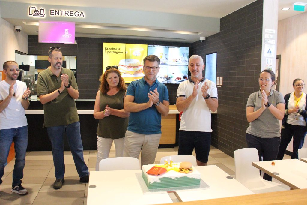 O franqueado dos restaurantes McDonald's na região de Entre Douro e Vouga, Francisco Nadais e o gerente do estabelecimento, Hélder Silva, partilharam com os seus colaboradores a sua gratidão e orgulho pela trajetória de sucesso que presenciaram ao longo dos anos.