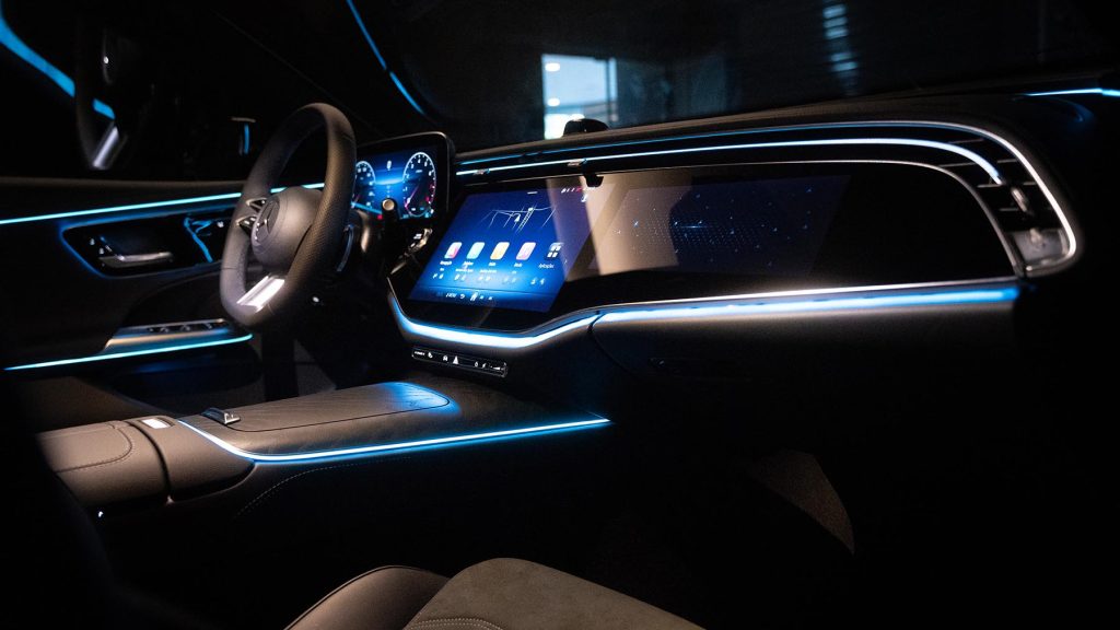 É no design interior que está a grande “revolução” do novo Mercedes-Benz Classe E face ao antecessor (o W213). Aí encontra-se o tablier com MBUX Superscreen (semelhante ao MBUX Hyperscreen).