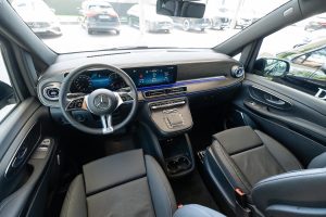 Confortável, espaçoso e tecnologicamente avançado, o novo design do cockpit do Classe V e do EQV eleva o luxo a um novo nível. Inspirado no design de mobiliário, combina luxo analógico e digital. O painel de bordo elegante em madeira inclui dois monitores de 12,3 polegadas com aparência flutuante, integrados numa superfície de vidro comum, criando uma aparência moderna de ecrã plano.