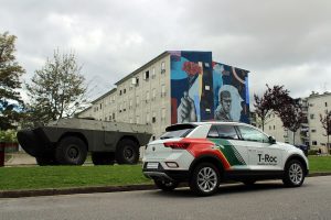 O segundo modelo em destaque é ó renovado T-Roc, a versão VW T-Roc@PT, produzida em Palmela, celebra a sua nacionalidade portuguesa e apresenta-se com vidros traseiros escurecidos, jantes em liga leve 17’ “Johannesburg” e a personalização no pilar C.