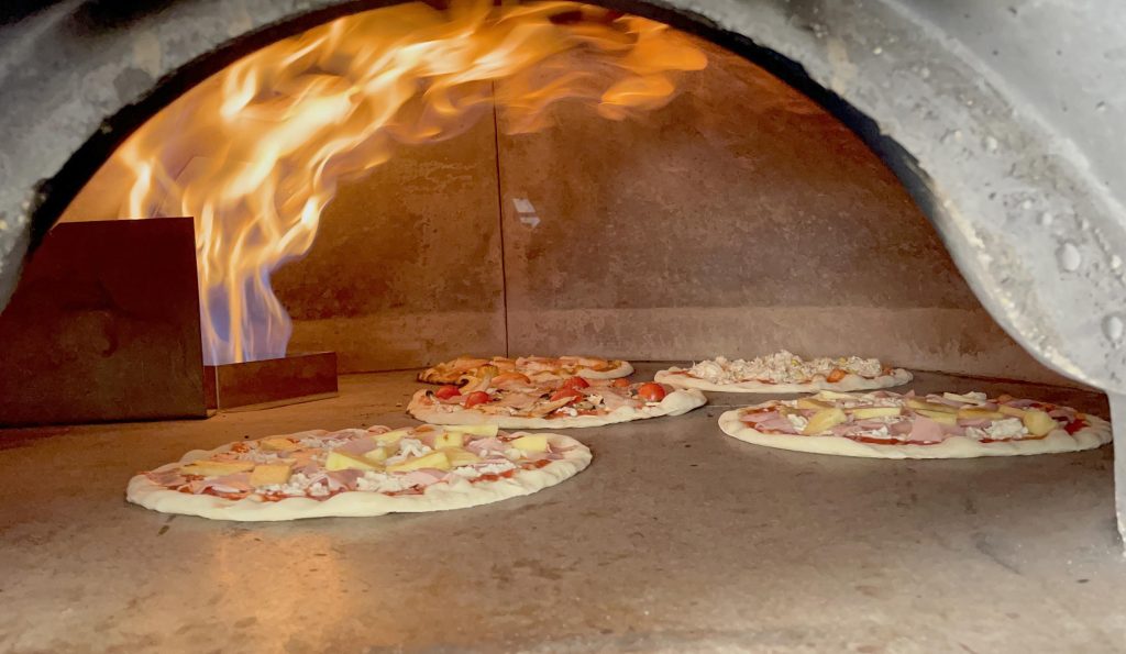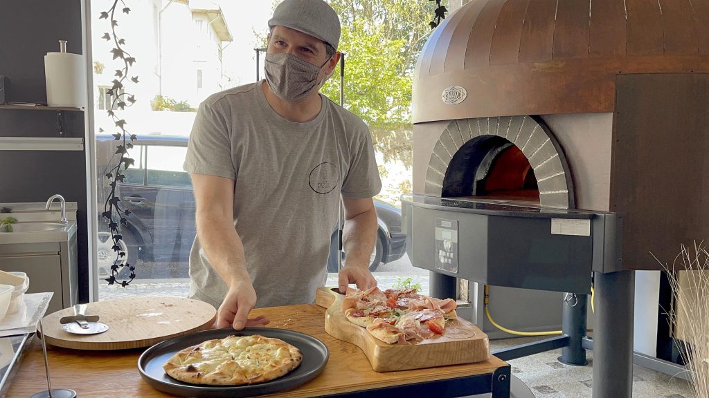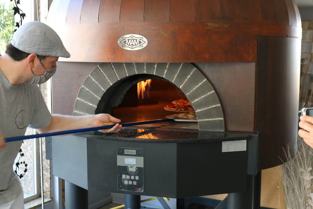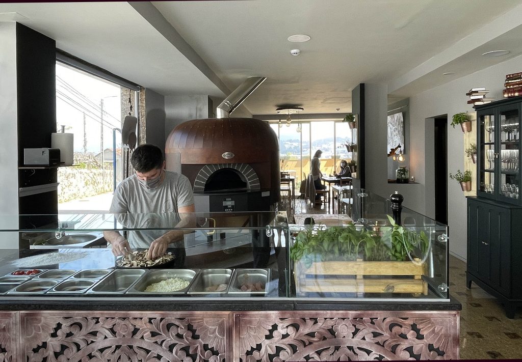 À entrada, está o forno. Funciona como montra. É possível ver de fora cada pizza a ser confecionada, com ingredientes frescos e naturais. Em Barcelona, onde Tiago Campos e Sandra Haiduck viveram era assim. As pessoas até paravam e tiravam fotografias à montra da pizzaria italiana onde estiveram.