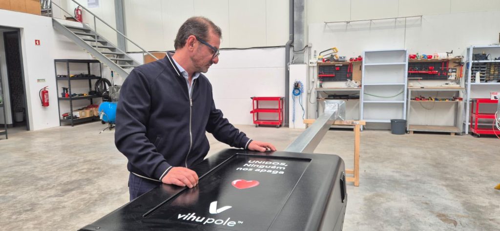 Com uma vida útil entre os 20 e os 25 anos, a solução vihupole não consome “um cêntimo de energia” nem emite “um grama de CO2” para a atmosfera. Tal como enfatizado pelo diretor-geral da Vihupole, a redução da pegada de carbono sempre foi importante para a empresa, principalmente quando o vihupole começou a ser desenvolvida nos últimos anos. Desde o policarbonato reciclado que reveste o armário do poste até à escolha de todos os subprodutos que compõem o vihupole, Hugo Almeida afirmou que a sustentabilidade é “fundamental” e uma “bandeira da empresa”. “É um produto que, no limite, pode funcionar como redundância. Isto é, mesmo que não exista energia e telecomunicações convencionais, o produto pode efetivamente funcionar plenamente”, sublinhou o empresário. “Na minha ótica, faz todo o sentido a instalação de um vihupole por freguesia. Não digo isto na vertente comercial, mas na vertente técnica, por uma questão de necessidade. Depois das consequências das tempestades e do «apagão», é inevitável termos mais situações deste género”, considerou, acrescentando que este tipo de soluções traz um valor acrescentado, dando “algum conforto” à população e às forças de autoridade. “Em caso de «apagão» ou tempestade contínua, uma cidade com uma rede de videovigilância convencional não vai funcionar. Sabemos que, quando temos situações dessas, o número de assaltos e roubos aumenta exponencialmente”, observou.