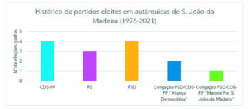 Nos 37 anos seguintes (1979-2016), os votantes sanjoanenses elegeram o CDSPP, PSD ou os dois unidos em coligações, com destaque para a liderança do CDS-PP que foi a mais longa, por 16 anos (1985-2001). As eleições mais recentes, em 2017 e 2021, determinaram como líder o PS [1]. Aliás, estas duas últimas eleições autárquicas resultaram em algo nunca antes visto na história de S. João da Madeira, que é a eleição do PS em dois mandatos consecutivos, significando uma mudança à esquerda. Tendo em conta o historial de eleições, o que terá originando esta mudança de sentido de voto por parte dos sanjoanenses?