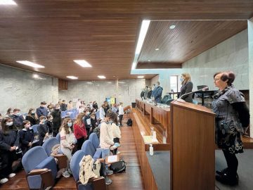 Num dos primeiros momentos das suas novas funções, os alunos que tomaram posse como “parlamentares” no âmbito deste projeto guardaram um minuto de silêncio contra a guerra vivida na Ucrânia e em defesa da dignidade humana e da liberdade, juntando-se nesse gesto à Presidente da Assembleia Municipal, Clara Reis, ao Presidente da Câmara, Jorge Sequeira, restantes autarcas e professores presentes.