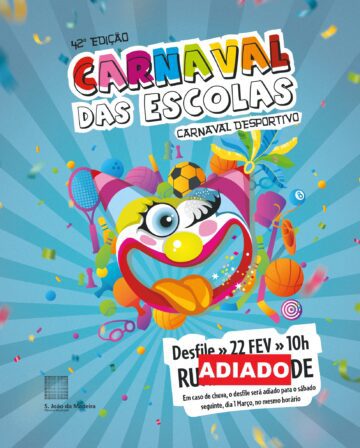De acordo com o Instituto Português do Mar e da Atmosfera (IPMA), prevê-se para amanhã, 22 de fevereiro, a ocorrência de chuva (superior a 80%) no horário do desfile do Carnaval das Escolas de S. João da Madeira.