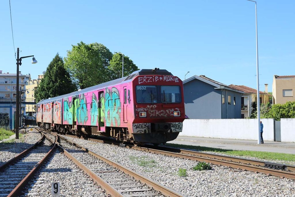 Pouco depois das 10 da manhã, da última segunda-feira, cerca de 40 pessoas aguardavam, na estação desativada em S. João da Madeira, a chegada do comboio que trazia duas automotoras, ambas grafitadas, com capacidade de 50 lugares cada.