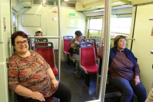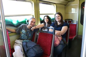 Matilde Barbosa, Beatriz Gonçalves e Ana Paiva são amigas e escolheram o último dia 22 para passarem umas boas horas na praia. “Este é para nós o melhor transporte para Espinho e mais económico. De autocarro é mais dispendioso e não temos grandes alternativas”, refere Matilde. Apesar de considerar que a viagem é de aproximadamente uma hora, mas “o tempo até passa bem porque vamos a conversar”, lamentando apenas o estado em que as automotoras se encontram, as carruagens vandalizadas, o que acaba por retirar a visibilidade para o exterior. ” Nós já nos habituamos a esta imagem, mas este comboio tem que ser tratado de outra forma, pois parece, na verdade, um monte de latas todo pintado. Este comboio merece mais respeito”, refere Beatriz. Por seu turno, Ana defende que “este meio de transporte é muito utilizado por pessoas que vão para o trabalho e por jovens estudantes” que encontram nele um transporte mais “económico”.