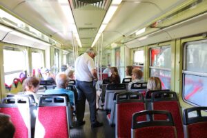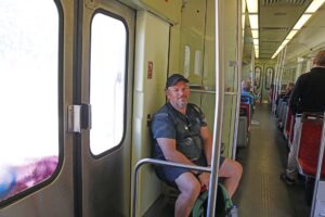 Francisco Silva está de férias em Portugal e entrou na segunda carruagem em S. João da Madeira, na companhia da Mãe para passarem o dia em Espinho. Sempre que vem de França faz questão de viajar neste comboio porque, além das memórias que tem de infância, entende que este é um meio de transporte “familiar”, caracterizando mesmo “um encontro de partilha e convívio entre as pessoas que circulam neste comboio”, já que, “mal nos sentamos, conversamos uns com os outros. Novos e velhos, e isso não acontece, por exemplo, nos autocarros”, assegura.