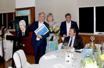 Seguiu-se uma breve cerimónia de entrega de lembranças: o Diploma de Mérito Profissional e, como é tradição no clube, a oferta de um retrato do homenageado, pintado pelo artista plástico rotário Jorge Miguel.