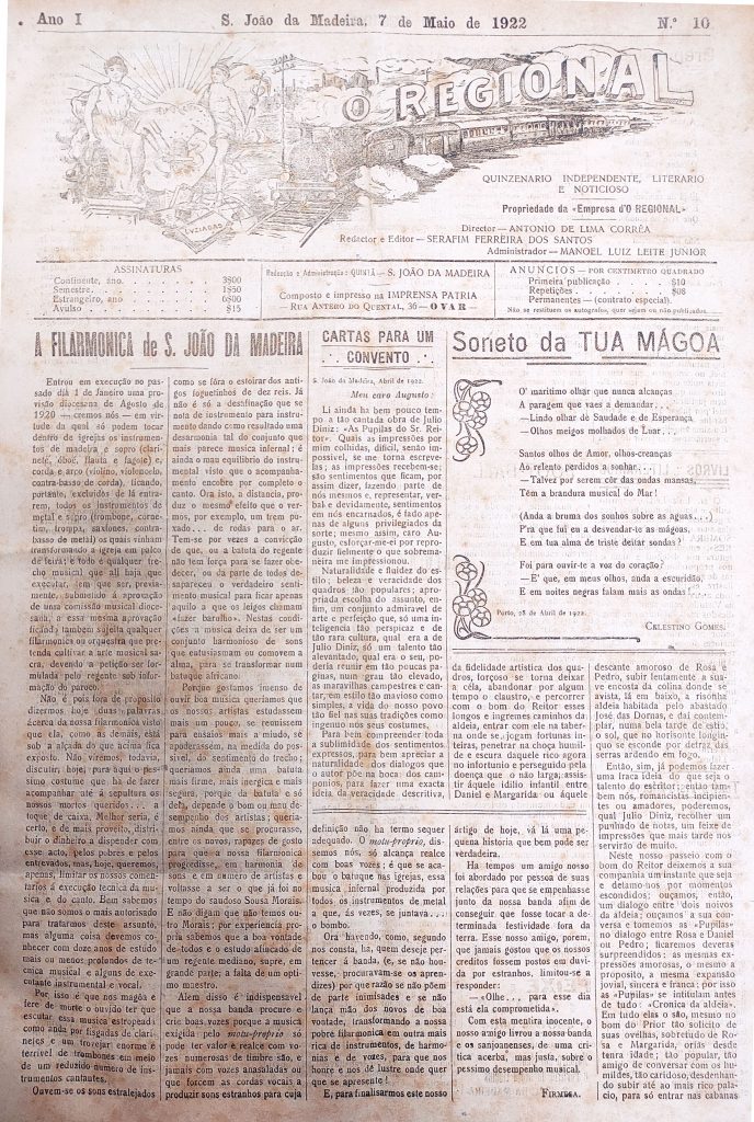 Na capa da edição de 7 de maio, um texto assinado por Firmesa fala da banda filarmónica de S. João da Madeira, deixando algumas críticas – construtivas, diga-se.