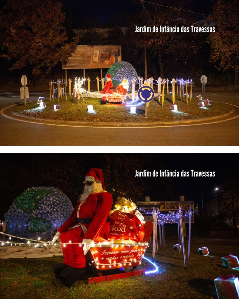 Nesta iniciativa, destacou-se a criatividade, a poupança energética e o reaproveitamento de materiais, promovendo a sustentabilidade na decoração natalícia.