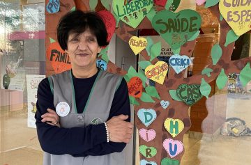 O primeiro emprego que teve foi o de ser Mãe a tempo inteiro de três filhos. Sorte ou azar, o passar dos anos fez com que Almerinda Lestre Guimarães descobrisse que aquilo que gostava mesmo de fazer era de estar e cuidar de crianças. E o destino assim o permitiu. Voltou a estudar apesar da responsabilidade da maternidade. Tirou o 5.º e 6.º ano, fez várias formações até que, aos 42 anos, as portas do Agrupamento Dr. Serafim Leite, em S. João da Madeira, realizaram o seu sonho. “Já cá estou há 15 anos como auxiliar de ação educativa”, na Escola do Parque. “Sou uma pessoa muito feliz naquilo que faço diariamente. Conheço todas as crianças desta escola”.
