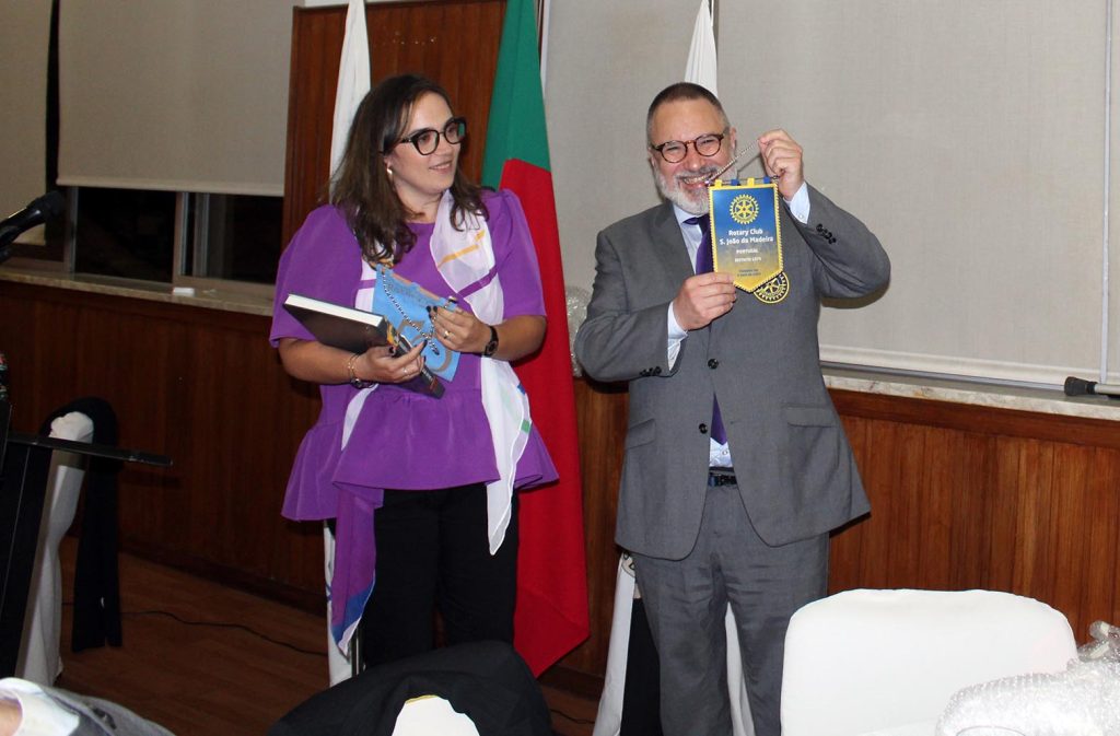 A parte final do convívio foi reservada às intervenções. Falou, em primeiro lugar, em nome dos clubes presentes, o presidente do Rotary Club de Mirandela a afirmar a proximidade afetiva que o liga ao clube de S. João da Madeira. A vereadora Paula Gaio, enumerou o alcance dos vários projetos do clube, para concluir que “S. João da Madeira é um concelho pequeno, mas com um clube rotário grande em valores”. A presidente do clube, Inês Reis, confessou que ia “falar do coração, após um dia tão cheio de emoções. O que nos une é o facto de sabermos que trabalhamos em prol da comunidade sanjoanense e das causas de Rotary Internacional”. O último orador foi José Alberto Oliveira a lembrar que “Rotary é família, é a possibilidade de sentir alguém como família, pessoas que se juntam para fazer o bem. Somos mais de um milhão e quatrocentas mil pessoas em todo o mundo. Depois deste dia, levo daqui mais esperança. Há muitas coisas para fazer, na procura da paz, no fornecimento de água potável, no combate à pobreza… São as causas que nos movem. Juntos teremos um mundo em que as pessoas se unem para resolver problemas”.