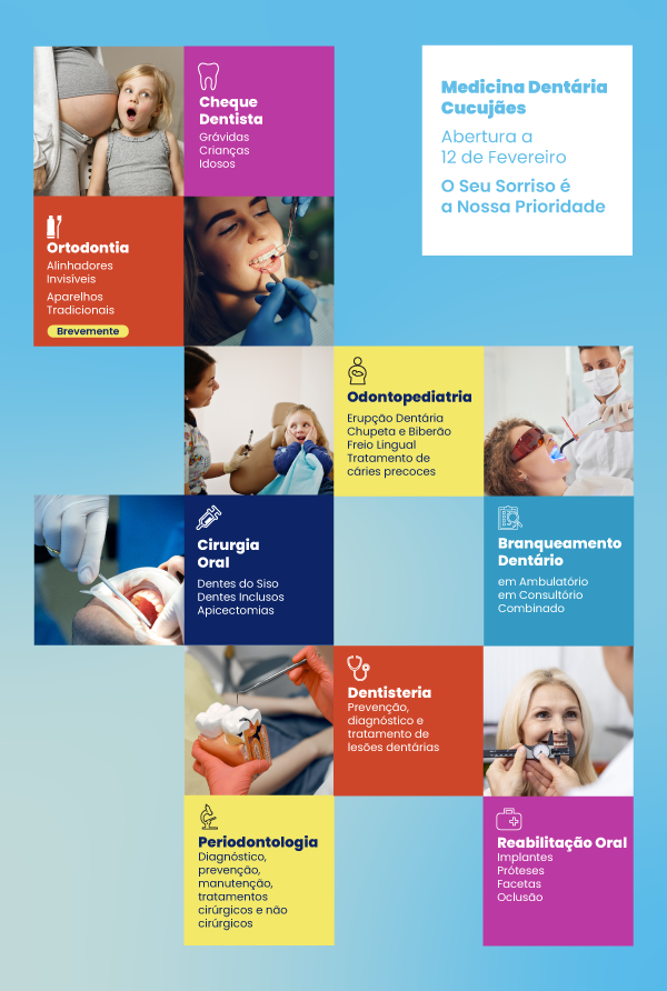 No próximo dia 12 de Fevereiro, o Grupo Centro Médico da Praça vai abrir a especialidade de Medicina Dentária na Vila de Cucujães. Este novo espaço oferece tecnologia atualizada, atendimento com profissionais especializados e um espaço acolhedor para toda a família. Com uma equipa multidisciplinar de médicos dentistas e higienistas orais qualificados, a Clínica CMP Vila de Cucujães oferece um vasto leque de tratamentos — desde consultas de diagnóstico, a reabilitação oral completa: cirurgia oral, dentisteria estética, implantes dentários, periodontologia, branqueamentos, ortodontia, odontopediatria, próteses fixas, removíveis e raio-x. Em breve estará também disponível o tratamento de alinhamento dentário com recurso a alinhadores transparentes.