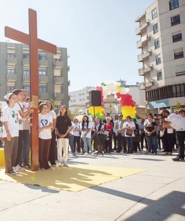 A cruz peregrina e o ícone de Nossa Senhora Salus Populi Romani, Símbolos da Jornada Mundial da Juventude de 2023, chegaram ontem, na hora de almoço, à renovada Praça Luís Ribeiro onde eram aguardados por centenas de pessoas.