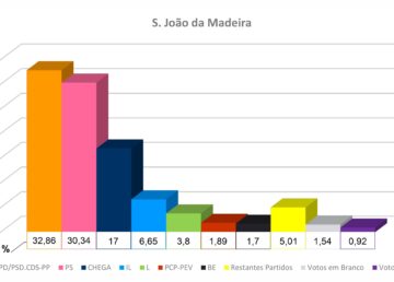 A Aliança Democrática venceu as legislativas em S. João da Madeira, concelho natal de Pedro Nuno Santos, ao conquistar 32,86% dos votos. O Partido Socialista ficou em segundo lugar, com 30,34%. O Chega ficou em terceiro lugar com 17%. Mais »